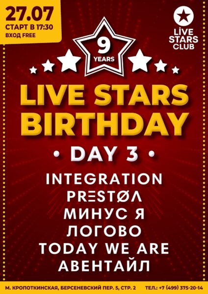 Итак, 27 июля 2025 – третий день масштабного празднования 9-летия клуба Live Stars! Клубу исполняется максимальное из однозначных чисел лет, всего год остается до первой круглой даты, и с этим Live Stars поздравят прекрасные команды!